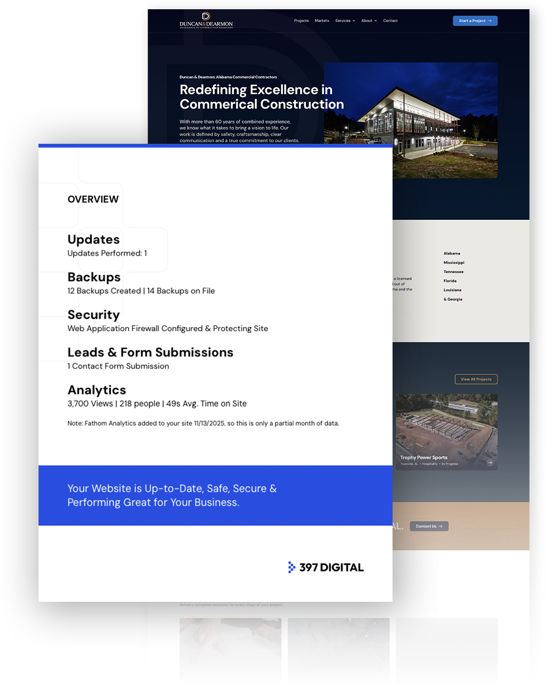 Want your website handled the right way every month? We keep your WordPress site secure, updated, backed up, and running smooth. You also get design and development hours for new pages, improvements, and anything else your business needs as it grows.